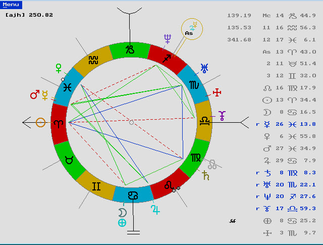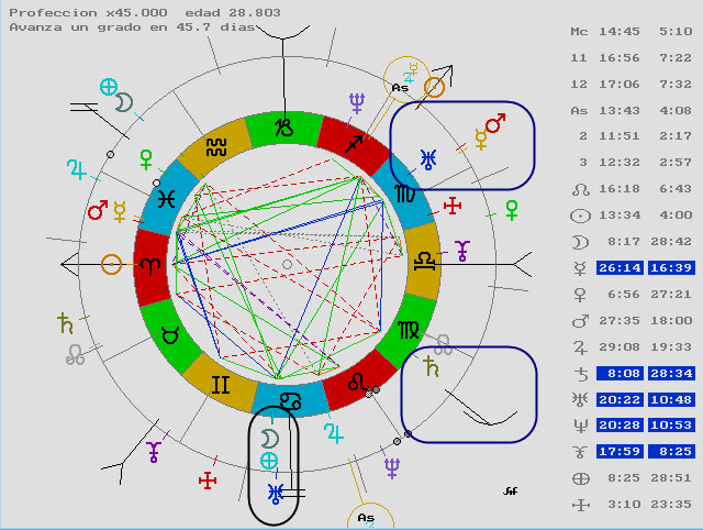 Este atacir también nos muestra a Marte activo, en conjunción con la 4ª casa de los finales, al Sol que acaba de pasar por Júpiter regente de la 12 y además la 4ª casa en conjunción con el Infortunio.